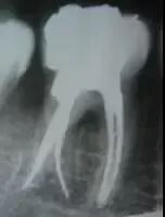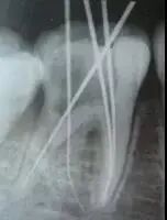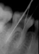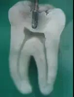 最后来玩一个根管治疗质量的评估——下图是武大彭彬教授的一个病例,仔细观察可以挑出一点问题,但问题事出有因!看看你的“眼力”如何——问题在哪里?教授的专业水平是不用怀疑的,那么事出的原因可能是什么?