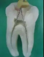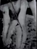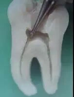1、 开髓 洞型是否制备的符合要求,髓室顶是否揭得刚刚好,没有破坏洞壁及洞底结构。 图1、裂钻钻到近髓 图2、球钻穿髓 图3、小号锉探查根管口 图4、球钻揭髓顶 图5、修整洞型 图6、完成开髓 2、 去腐 根管预备之前是否将窝洞的腐质完全去除,避免在根管预备过程中将冠部污染带进根管; 3、 根管口的直线通道 特别对于弯曲根管!预备根管之前是否重视这个环节,尽管找到了根管口,锉也能顺利进入根管,但根管口的直线通道是否建立也是衡量医生操作技能的重要依据。方法很多:手动器械操作时我们可以采用价格便宜的“GG”钻,PROTAPER 机动预备时可以采用 SX 锉。 1、弯曲根管冠部处理之前; 2、用GG钻或SX锉进行预备; 3、处理后形成的直线通道 我的病例1_____冠部处理成直线通道后的充填效果 我的病例2_____下颌7"C"型根管的充填效果 4、 疏通中下段根管 要用小号锉 08和10号 K锉进行探查,手法是用顺反30度来回搓动的方法进入,建立根管中下段的预备通道,然后换用15号 K锉进行疏通,便于大号不锈钢器械或镍钛器械的进入。 5、 确定工作长度 15号 K锉进入时最好配合根测仪;术前,术中,术后都要拍X—RAY。 6、 冲洗方法 每次换锉之前及都要进行,但是否有效往往是不确定的,因为冲洗的效果和多方面因素有关——小号的针头(如果没有专用的针头可以用皮试的小针头),“双次冲洗法(自命名)”——即每次冲洗完毕后再用小号锉(如10号或15号)进入根管下段捣动一番,让碎屑随着冲洗液浮出根管中上段,然后进行二次冲洗,这样就能将根管内的碎屑清除彻底!注意头次冲洗后不要清除根管内的冲洗液,它的存在有非常重要的作用! 7、 建立根充档 根尖部牙本质和牙骨质的交界处不要破坏,这对后期的根充以及主尖的选择很有意义,前提是每次预备都要明确的把握工作长度! 8、 弯曲根管最好采用不锈钢锉同镍钛锉配合使用 用不锈钢器械预备弯曲根管中下段,镍钛器械预备中上段! 9、 "冠根方向”预备是可取的方法,但有些时候还是需要结合“逐步后退法"使用的。 10、 熟悉使用器械的性能及各类操作方法的临床要点 逐步后退法预备存在的一些问题——A,根管锉与根管壁接触面积大(锉进入时困难;容易被卡住;器械容易折断;碎屑容易被推向根尖区;锉尖不好控制。);B,根管成形受限(根尖区冲洗困难;碎屑清除困难;碎屑容易推出根尖孔以外引起根尖症状。)C,需要频繁换锉(操作繁琐;临床操作时间长。)因此,很多牙医已经不采用该法,取而代之使用的是采用镍钛器械进行冠根向预备法“Crown Down”。但不锈钢器械(如K锉)还是有它的用途——小号K锉可以用来寻找根管以及进行根管疏通;用来确定工作长度;用来进行根尖预备;弯曲根管配合镍钛器械进行预备比较安全! 问题答案:这个病例的问题主要反应在开髓的洞形修整,注意观察该牙X-RAY的左侧洞壁,如果常规情况制备成这样是由于裂钻破坏了洞壁和洞底所形成的台阶。如果评估根管治疗的质量那是要扣分的!但这个病例仔细观察洞壁形态就可以看出:该病例属于再治疗的病例,因此还是属于一个理想的病例。 图文来源网络,版权属于原作者 转载只为分享,如有侵权,请联系删除 扫一扫 | 客服微信 了解更多 | 行业招聘资讯 - 医招职达 - 让人才更有价值 做精准高效的口腔人力资源服务平台