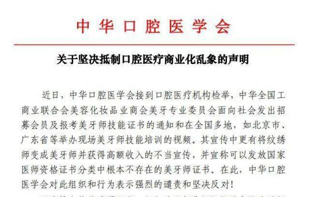此前不少“美牙师”只是经过了速成培训,获得“美牙专委会”发放所谓的美牙师证书。由于发生多起严重毁牙事故,卫生主管部门和全国工商联于2020年取缔了中华全国工商联美容化妆品业商会“美牙专委会”,废除了美牙师证书,因此所谓的美牙师证书在国家医师资格证书分类中根本不存在。