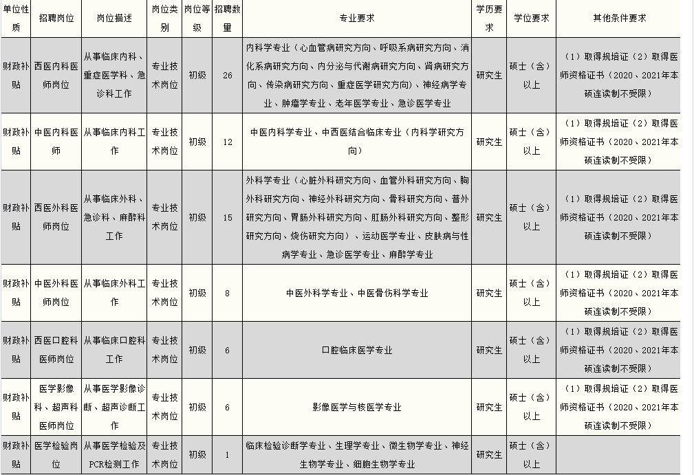 按照《事业单位人事管理条例》(国务院令第652号)等规定,2021年莱州市人民医院面向社会公开招聘高层次人才74名(招聘岗位要求详见附件1)。现公告如下: